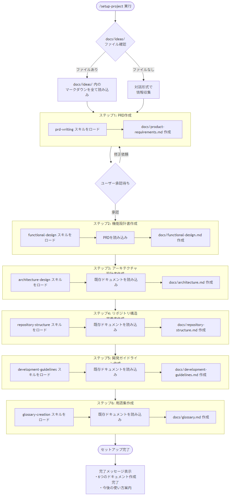2. `/setup-project` で永続的ドキュメント作成(対話的に6つ作成)