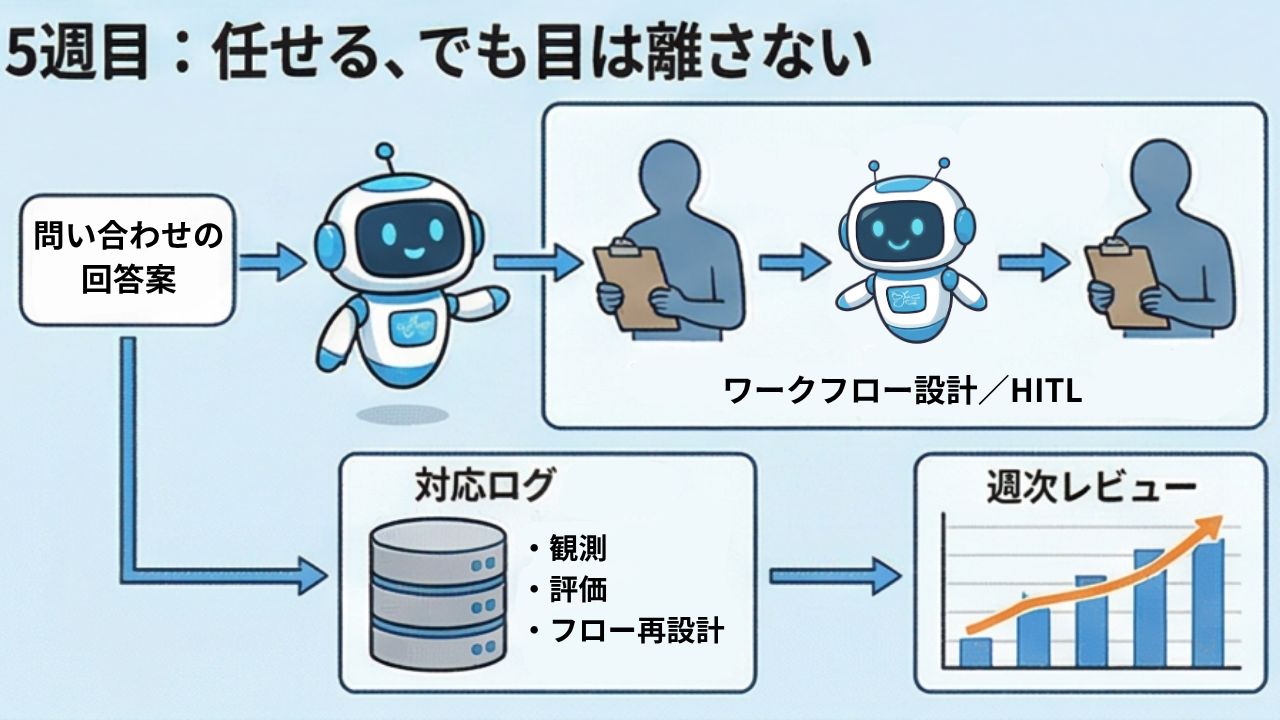 5週目:人間の確認ポイントを設け、AIの動きを観測する(ワークフロー・HITL・評価)