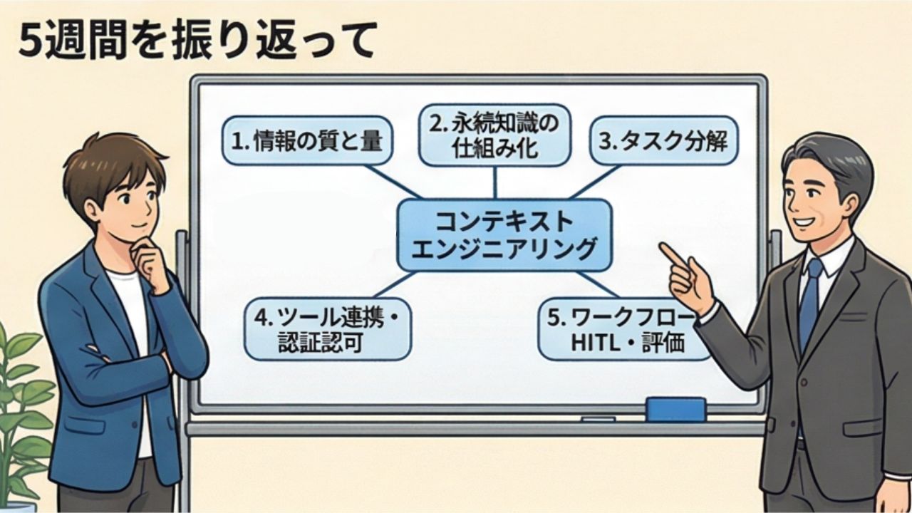 まだまだ学ぶことはたくさんある。でも、この5週間で手に入れた「コンテキストエンジニアリング」という地図があれば、これからの道のりも迷わずに進んでいけそうだ、と。